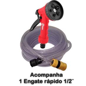 Conteúdo da embalagem: 1 Esguicho plástico jardim 5 funções NOVE54 + Mangueira para jardim, trançada, transparente, 20 m, VONDER - Esguicho para jardim. Indicado para uso doméstico, limpeza de calçadas, veículos e jardinagem. Corpo em plástico ABS de alta resistência e jato múltiplo com 5 posições de ajuste ducha central, jato dirigido, cone, leque e misto . Detalhes técnicos do produto Referência 3196012005 - E CDC legal: 90 dias Massa aproximada peso 0.097 kg Tipo do jato Múltiplo Número de posições de ajuste 5 funções Material do esguicho Plástico Tipo de entrada do esguicho Conector macho para engate rápido 1/2 - Mangueira para jardim, trançada, transparente, 20 m, VONDER Conteúdo da Embalagem: 1 Rolo de mangueira para jardim com 20 metros. Acompanha: 1 conector 3/4, 1 adaptador 3/4 para 1/2 e 1 esguicho plástico. Pronta para uso, acompanha a conexão da torneira e esguicho plástico reto. Indicada para condução de água fria na limpeza e irrigação em jardim. legal: 90 dias + contratual: 3 meses DETALHES TÉCNICOS Material da mangueira:PVC Diâmetro interno:7/16 - 11,1 mm Espessura da parede:1,8 mm Pressão máxima de trabalho:140 lbf/pol Cor da mangueira:Transparente Massa aproximada peso :1,548 kg Marca: Não Informado Ean: 7908481209178