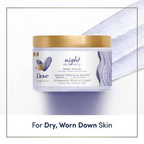 Dove Body Love Body Polish Night Recovery de 3 unidades para pele seca e desgastada, esfoliante corporal com retinol e óleos botânicos para pele sedosa e macia de 12 onças