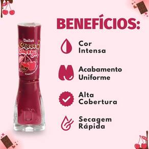 Esmalte Cremoso Dailus Choco Cherry Bombom de Cereja O Esmalte Cremoso Dailus Choco Cherry Bombom de Cereja é a escolha perfeita para quem ama unhas com cor intensa, brilho sofisticado e longa duração. Com textura cremosa e acabamento uniforme, o tom cereja vibrante traz elegância e ousadia em uma combinação irresistível inspirada na coleção Choco Cherry. Sua fórmula é vegana, de secagem rápida e oferece cobertura impecável já nas primeiras camadas.