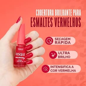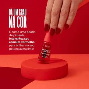 Esmalte Risqué Chilli Beans - Intensificador de Vermelho O esmalte Dá Um Grau na Cor da coleção Risqué & Chilli Beans Colorindo Seus Instintos é um Intensificador de Vermelho com acabamento de cobertu