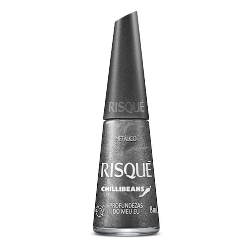 Esmalte Risqué Chilli Beans - Profundezas do Meu Eu O esmalte Profundezas do Meu Eu da coleção Risqué & Chilli Beans Colorindo Seus Instintos é um cinza com acabamento metálico, secagem rápida e ultra