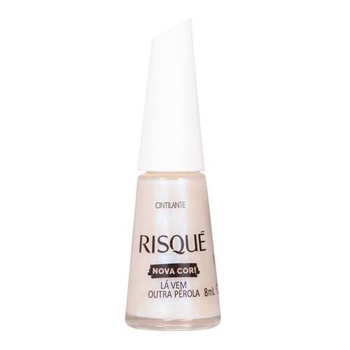 Risqué Lá vem Outra Pérola é cintilante, de secagem rápida e com ultra brilho, além de ter longa duração nas unhas. Sua fórmula é hipoalergênica, isto é, livre de componentes que costumam causar alerg