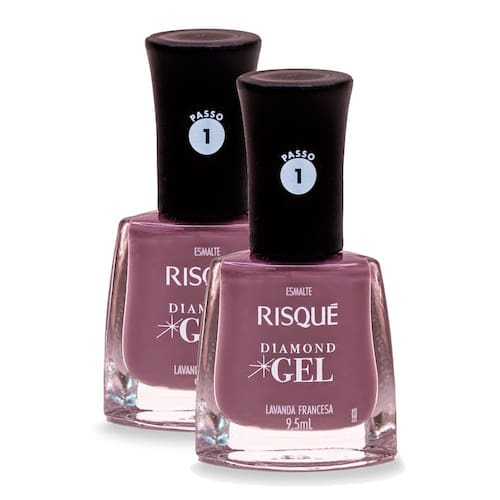 Esmalte Risqué Diamond Gel Cor Lavanda Francesa 9,5ml Kit com duas unidades