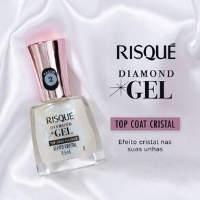 Esmalte Top Coat Fixador em Gel. Efeito Cristal. Proporciona durabilidade com ultra brilho transformador. Conta com um pincel de 800 cerdas. Possui fórmula é hipoalergênica.