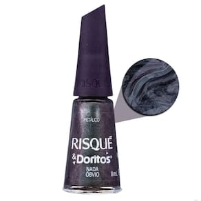 O esmalte cinza Risqué & Doritos, que como o próprio nome diz, não é Nada Óbvio, é metálico com nuances de roxo, de secagem rápida e com ultra brilho. Seu pincel proporciona uma aplicação perfeita e alta cobertura. Além disso, possui longa duração e fórmula hipoalergênica, sendo livre de componentes que costumam causar alergias. Todos os produtos Risqué são aprovados pelo programa Leaping Bunny da Cruelty Free International, padrão ouro globalmente reconhecido para produtos livre de crueldade animal. A nova coleção Risqué & Doritos te inspira a se desconectar de preconceitos, deixando para trás o que pensam de você ao escolher o que melhor representa sua essência em cada momento, seja na cor do esmalte, no seu look e até nos snacks que escolhe para dividir com as pessoas que você ama! Inspire-se, contagie e impacte. Conheça toda a Coleção Risqué & Doritos. Ouse mostrar suas cores!
