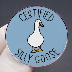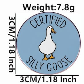 Material: liga. Tamanho: 3 x 3 cm Peso: 7,8 g Quantidade: você receberá toda a quantidade de peças do mesmo programa fotográfico principal 🦢 Playful Cartoon Goose — Apresenta um ganso branco sobre fundo azul esmaltado com texto em negrito “Certified Silly Goose”, criando um design de broche engraçado e atraente. Material de liga durável — Feito de liga resistente com revestimento de esmalte, garantindo cores vibrantes, acabamento suave e desgaste duradouro. Uso multiuso — Funciona como alfinetes de blusa, broche, alfinete de lapela ou crachá, perfeito para decorar jaquetas, mochilas, camisas, suéteres, chapéus e muito mais. Fun Fashion Statement — Um acessório peculiar para adolescentes, mulheres e homens que gostam de designs divertidos, tornando as roupas mais elegantes e exclusivas. Leve e compacto — mede 3 x 3 cm, apenas 7,8 g, é confortável de usar e fácil de transportar para uso diário, reuniões casuais ou estilos criativos.