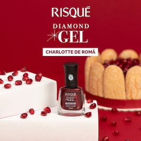 Risque Diamond Gel - Charlotte de Romã Deixe suas unhas radiantes e cheias de estilo com o Risqué Diamond Gel na cor Charlotte de Romã! Este esmalte é perfeito para quem busca uma combinação de durabi