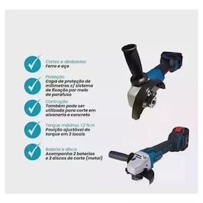 Itens inclusos: - 1x Lixadeira Esmerilhadeira Angular 48V 100MM - 1x Carregador - 1x Chave de Esmerilhadeira - 2x Discos de corte metal - 2x Baterias 48V 4.0AH