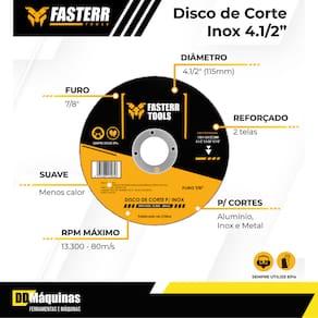 KIT INCLUI: DISCO DE CORTE INOX 4.1/2 X 3/64 X 7/8 INOX FASTERR FSTC01 (10 UNIDADES)