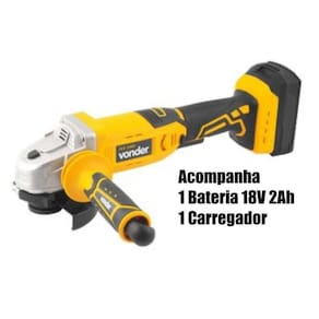 Conteúdo da Embalagem: Esmerilhadeira 4.1/2¨ com 1 bateria 2.0 ampéres 18V IEV 1808 + 1 carregador de barteria VONDER