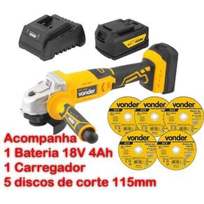 Esmerilhadeira 4.1/2 Vonder 1 Bat 4.0Ah Iev 1808 + 5 Disc
