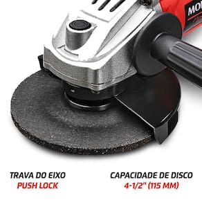 Produto: esmerilhadeira angular 4.1/2" 850 watts - fes-02 marca: mondial voltagem: 220vdescrição: a esmerilhadeira angular 4.1/2" 850 watts fes-02 da mondial é uma ferramenta poderosa e eficiente, projetada para superar suas expectativas em trabalhos de corte, desbaste e polimento. Com um motor de 850 watts e capacidade para atingir até 11.000 rotações por minuto, esta esmerilhadeira oferece uma performance impressionante para os mais variados projetos. A esmerilhadeira angular fes-02 da mondial é a ferramenta certa para profissionais e entusiastas que não abrem mão de eficiência e segurança. Características: • potência e velocidade: a ferramenta tem motor de 850w e chega a 11.000 rotações por minuto. • capacidade de disco: a fes-02 tem capacidade de disco de 4-1/2"" 115 mm . • trava do eixo: a trava do eixo push lock permite que você troque o disco de forma mais fácil, além de garantir sua segurança durante o uso. • mais segurança: a função empunhadura lateral, com duas opções de posição, e o protetor ajustável sem chave, proporcionam maior segurança na utilização da ferramenta. • botão liga/desliga com trava: com a trava, você não precisa segurar o botão liga/desliga para uso contínuo em trabalhos mais longos.  • comodidade: 1 ano de mondial.Especificações: potência: 850wdiâmetro do disco: 4.1/2"velocidade: 11.000 rpm100 % rolamentada.Itens inclusos: disco abrasivo