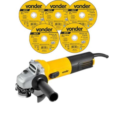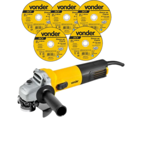 Kit composto de 1 Esmerilhadeira angular VONDER 4.1/2¨, 750 W, 220 V, EAV 754 + 5 Discos de corte 115,0 mm x 1,0 mm x 22,23 mm, DCV, VONDER
