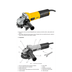 Esmerilhadeira angular. Acompanha: 1 capa de proteção, 1 punho auxiliar e 1 chave dois pinos. Possui punho auxiliar com duas posições de fixação que atua como apoio durante o manuseio da ferramenta, adaptando-se a diferentes situações e locais de uso, muitas vezes de difícil acesso. Com estrutura compacta, conta com botão de trava do eixo e dupla isolação, garantindo maior segurança ao operador.