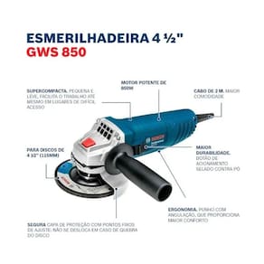 Potência e Velocidade: Com 850W de potência e uma velocidade de 11.000 RPM, o GWS 850 oferece desempenho superior em cortes e desbastes, garantindo resultados rápidos e precisos.