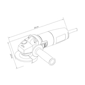 Corpo e botões injetados. Cabo elétrico de 1,2 m. Botão trava do eixo para auxiliar na troca do disco. Rosca do eixo: M14 Rotação: 11000 min-1 / rpm Tensão: 220 V Potência: 800 W Frequência: 50/60 Hz