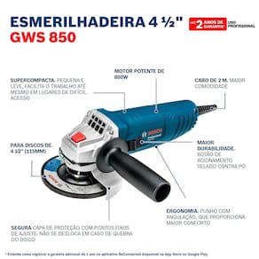 -a esmerilhadeira gws850 possui capa de proteção com pontos fixos de ajuste: não se desloca em caso de quebra do disco;