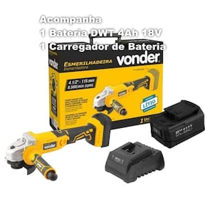Conteúdo da embalagem: esmerilhadeira vonder 4.1/2 iev 1808 + bateria 18v lítio 4 ah ibd 1804 dwt linha intercambiável + 1 carregador de bateria dwt