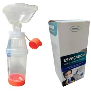 Espaçador Para Medicamentos Aerosol Adulto Infantil Supermedy O Espaçador Para Adulto/Infantil Supermedy é indicado para a administração de medicamentos em aerossol disponíveis em dosificadores pressurizados, popularmente conhecidos por Bombinhas. Este espaçador garante que apenas a substância ativa chegue até os pulmões. Possui uma máscara anatômica que ajuda a vedar totalmente o ambiente externo, mantendo a retenção máxima do . É compatível com todos os dispensadores de aerossol e o seu tubo é totalmente transparente para melhor visualização do . Modo de uso: 1. Verifique se há algum objeto indesejado dentro do espaçador. 2. Retire a tampa do inalador e acople a máscara firmemente sobre o bocal do espaçador. 3. Agite vigorosamente o inalador aerossol e acople na parte traseira do espaçador. 4. Posicione bem a máscara sobre o nariz e boca, solte todo o ar dos pulmões, pressione o botão do inalador aerossol até a saída total do e inspire lenta e profundamente. Segure a inspiração por 8 a 10 segundos e solte o ar em seguida. 5. Siga as instruções do seu inalador aerossol sobre o tempo a se esperar até poder repetir o processo. Principais características: Encaixe universal para todos os tipos de dispensadores de aerossol; Garante a inalação correta do spray de aerossol em pacientes de qualquer idade. Tubo totalmente transparente para melhor visualização do , BPA free; Acompanha 01 máscara anatômica para adaptação em qualquer tipo de rosto. Máscara macia e com vedação total do ambiente externo; Válvula, no tubo e na máscara, com retenção máxima do . Equipamento de uso individual Peso: 100g - Tamanho: único Conteúdo do pacote: 01 Espaçador Supermedy + 01 Máscara Infantil e Adulto