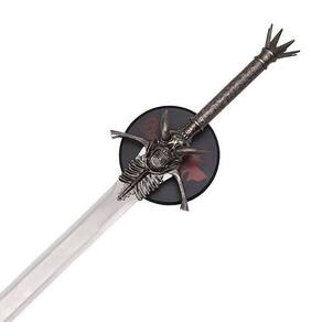 Espada Dante Devil May Cry 4 Rebellion Em Aço A Espada Rebellion é uma marca registrada de Dante que aparece ao longo da série de jogos Devil May Cry. Embora tenha a forma de uma espada claymore padrão, ela é uma lâmina mágica dada a ele como uma lembrança de seu pai, Sparda, e serve como uma manifestação física de seu poder. A lâmina estava originalmente dormente, mas foi despertada através do contato com o sangue de Dante. É feita inteiramente de metal, com o punho e a guarda sendo feitos de liga de zinco, e a lâmina de aço inoxidável. O punho é simples, mas a guarda tem um design esquelético, com um crânio no meio de cada lado, parecendo uma caixa torácica da qual a lâmina emerge. Comprimento Total: 136cm Material da lâmina: Aço Inoxidável 440, não afiada Comprimento da lâmina: 94cm Comprimento do punho: 30cm Material da placa/Suporte de parede: Madeira Peso da espada: 2580g Esta Espada Rebellion é uma réplica fiel da icônica de Dante na série Devil May Cry e é perfeita para fãs que desejam ter uma peça colecionável em casa. Marca: Não Informado