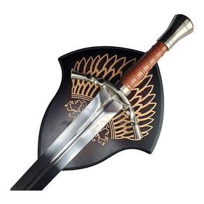 Esta linda espada do boromir e feita em aço com sua lamina cromada, que traz um lindo brilho dando elegância e originalidade no item, sua empunhadura tem uma combinação de madeira e metal para um acabamento perfeito.