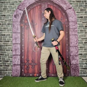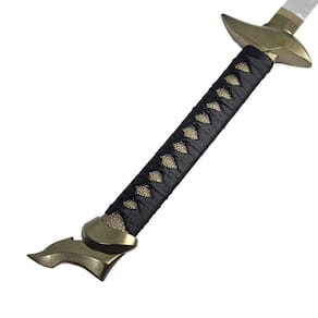 Lâmina: Madeira Bainha: Polímero Dimensões da Espada Comprimento Total: 103 cm Comprimento da Lâmina: 70 cm Largura da Lâmina: 3 cm Espessura da Lâmina: 8 mm Comprimento da Empunhadura: 26 cm Comprimento da Bainha: 74 cm Peso: 490 g