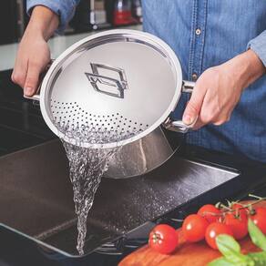 Mais saudável: por ser feita de aço inoxidável, a espagueteira Tramontina não libera nenhum tipo de resíduo nas suas receitas. Fácil de usar: uma espagueteira prática para todas as suas receitas e que faz bonito em qualquer tipo de fogão: gás, elétrico, vitrocerâmico e indução. Ainda possui tampa com saída de vapor e encaixe perfeito. Mais durável: o inox Tramontina é uma matéria-prima nobre, resistente e que vai fazer bonito por muito mais tempo na cozinha. Economiza tempo e energia: o segredo está no fundo triplo (aço inox + alumínio + aço inox), que distribui o calor uniformemente, proporcionando um cozimento mais rápido. Por isso, você pode manter o fogo baixo durante todo o preparo e, assim, poupar energia. Fácil de limpar: deixar sua espagueteira brilhando é simples, você só precisa de água, sabão e uma esponja macia. Se preferir, é só colocar na máquina de lavar.