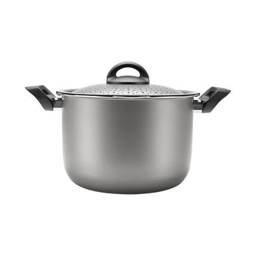 A praticidade e segurança de preparar o macarrão na caçarola e escorrer diretamente na tampa. A tampa possui uma trava de segurança, é só fechar e escorrer a massa. A Espagueteira Brinox, que tem capacidade para até 5,5L e é de alumínio com interior antiaderente – que faz com que seja muito mais fácil de limpar e deixa o preparo dos alimentos com menos óleo. Está disponível em 3 cores: prata, turquesa e cereja. Uma panela especialista no que faz._x000D_