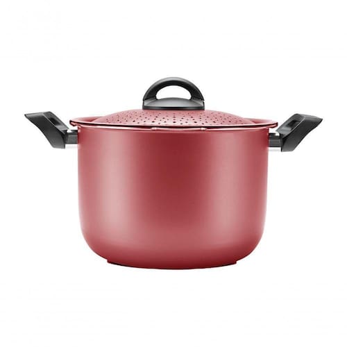 Espagueteira - Especiarias 22 Cm 5,5l Cereja A praticidade e segurança de preparar o macarrão na caçarola e escorrer diretamente na tampa. A tampa possui uma trava de segurança, é só fechar e escorrer a massa. A Espagueteira Brinox, que tem capacidade para até 5,5L e é de alumínio com interior antiaderente que faz com que seja muito mais fácil de limpar e deixa o preparo dos alimentos com menos óleo. Está disponível em 3 cores: prata, turquesa e cereja. Uma panela especialista no que faz.Certificação compulsória certificada pelo OCP 0070, registro 000888/2021 e classificação de antiaderência A (ótima), conforme Portaria Inmetro 499/2021. Material - Alumínio Linha - Especiarias Composição - 01 Espagueteira 22cm 5,5L Cereja Certificação - Classificação A (ótima) Registro-001463/2018 OCP-Senai/RS Garantia - 90 dias para vícios ou defeitos de fabricação. Instruções de Uso - Ean: 7896502877980