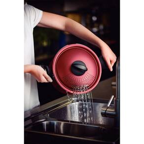 Com a espagueteira Tramontina Loreto em alumínio com revestimento interno e externo em antiaderente Starflon Max vermelho 22 centímetros de diâmetro 5, 7 litros você garante maior praticidade na hora de preparar um macarrão delicioso para suas refeições. Ideal para lhe acompanhar no dia a dia em sua cozinha, ela tem corpo de alumínio com espessura de 1, 6 milímetros, que proporciona um cozimento rápido e uniforme. Seu revestimento interno e externo é em antiaderente Starflon Max, evita que os alimentos grudem na sua superfície, é fácil de limpar, mais durável e não é prejudicial à saúde. Sua tampa é em alumínio com furos escorredores e travam. E suas alças são de baquelite antitérmico e seu pegador é em nylon, ambos materiais que não aquecem e oferecem maior segurança durante o manuseio. Ela ainda pode ir à máquina de lavar louças e vai deixar suas tarefas na cozinha muito mais práticas, tanto a de cozinhar quanto de limpar!