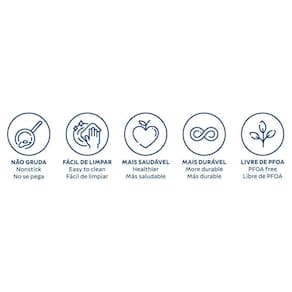 Corpo de alumínio com espessura de 1,6 mm que proporciona cozimento rápido e uniforme.