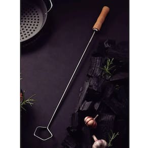 Espalhador de Brasas Tramontina Churrasco 67cm em Aço Inox e Cabo de Madeira Natural.