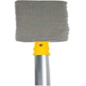 Possui cabo em alumínio, empunhadura em plástico com furo para armazenamento e ponta flexível, facilitando a aplicação.