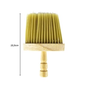 Características Principais: - Cerdas macias e densas; - Cabo de madeira ergonômico; - Manuseio seguro e confortável; - Remove fios de cabelo sem irritar a pele; - Leve e resistente; - Cerdas e cabo fabricados com materiais duráveis; - Evita que os fios fiquem grudados na escova, facilitando a limpeza; - Fácil de higienizar; - Ideal para uso em barbearias e salões de beleza.