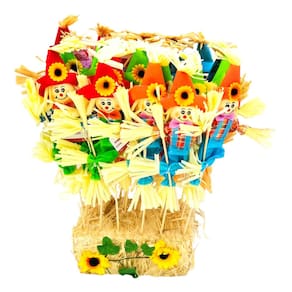 Ideal para escolas, quermesses e comemorações típicas, esse espantalho é leve, prático de posicionar e ajuda a compor um cenário festivo e acolhedor.