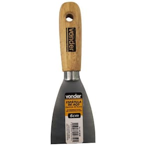 Espátula Betumadeira Aço 6cm Cabo de Madeira Vonder Indicada para aplicação de massa corrida, cola plástica, entre outros. Utilizada também para raspagens em geral. Possui lâmina flexível lisa em aço temperado