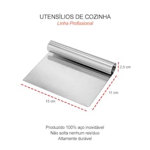 Contêm: 1 Espatula Raspador Medidas: 15 x 11 x 2,5 cm Material: Aço Inoxidável Casacha é uma loja online de artigos para casa, cozinha, banheiro e lavanderia
