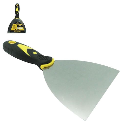 Espatula de metal cabo emborrachado amarelo / preto pro 5'' 21cm Informações adicionais: Ean: 7908348203394 Validade: indeterminada Tamanho aproximado: 5'' 21cm Peso aproximado: 95g Tipo de produto: espatula pro cabo emborrachado Cor: amarelo, preto e prata Composição: aço carbono e plastico Marca: Não Informado Ean: 7908348203394