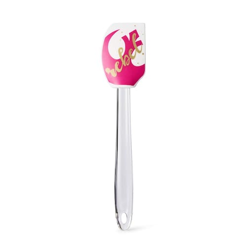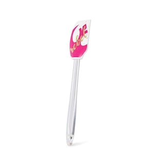 - Divertido e funcional: esta espátula branca apresenta um logotipo rosa da Aliança Rebelde e o texto "Rebel".