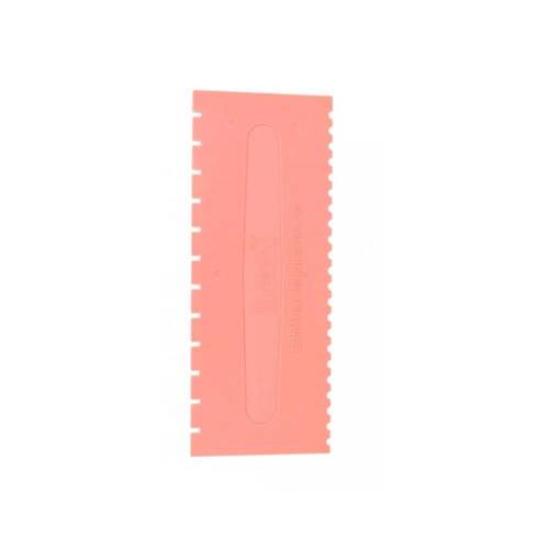 O material resistente dá firmeza às mãos e produz um resultado homogêneo a toda circunferência do bolo. Você pode aplicar outra cor de chantilly no espaço que a espátula abre ou deixar o efeito chanfrado que o produto proporciona. Cada lado da espátula produz uma decoração diferente. Deixe sua imaginação ir longe