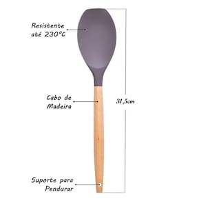 Material do Cabo: Madeira Material da Base: Silicone de alta qualidade Resistência Térmica: Até 230C Dimensões: 6,0 x 31,5 cm