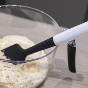 Mistura, alisa e retira a massa da tigela, possui uma alça estável feita de plástico de alta qualidade que garantirá uma aderência segura e conforto durante a mistura.