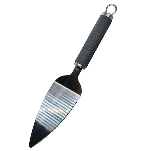 Esta espátula de bolo combina funcionalidade e design moderno, ideal para quem busca praticidade e estilo na cozinha. Fabricada em aço inoxidável de alta qualidade, sua estrutura é resistente à corrosão, garantindo durabilidade e performance mesmo com o uso contínuo.A lâmina versátil possui dois acabamentos: um lado liso, perfeito para cortes precisos e suaves em bolos e tortas, e um lado com serra, projetado para cortar massas mais densas ou camadas crocantes com facilidade. Essa dualidade permite que o utensílio seja utilizado tanto para cortar quanto para servir sobremesas de maneira prática e eficiente.O cabo emborrachado oferece conforto e segurança durante o manuseio, proporcionando uma pegada firme e antiderrapante, mesmo em ambientes úmidos. A ergonomia do cabo torna o uso confortável, reduzindo a fadiga em preparações prolongadas.
