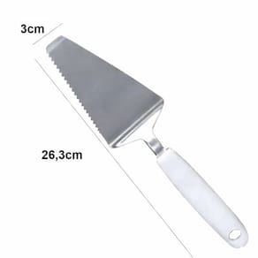 A Espátula é perfeita para cortar e servir fatias com praticidade e precisão. Fabricada em aço inox resistente, possui lâmina triangular com borda serrilhada no lado esquerdo, ideal para cortar bolos, tortas, cucas e outras sobremesas com facilidade.Seu cabo ergonômico em plástico proporciona firmeza e conforto no manuseio, além de contar com furo para pendurar, facilitando a organização na cozinha.Comprimento total: 26,3 cmLâmina em aço inox resistenteSerra lateral para cortes precisosCabo plástico anatômico com furo para pendurarIdeal para bolos, tortas e sobremesas em geralItem Incluso:1 Espátula Marca: Não Informado
