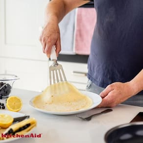 A Espátula Perfurada Flexível da Coleção Clássica KitchenAid foi desenvolvida para lidar com alimentos delicados, unindo resistência, versatilidade e design sofisticado.