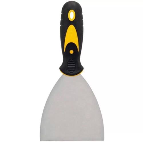 Conteúdo da Embalagem: 1 Espátula Indicada para aplicação de massa corrida, raspagens em geral entre outros. Possui lâmina em aço especial de alta resistência e cabo anatômico em polipropileno com revestimento emborrachado Largura da lâmina da espátula: 1.1/2 - 38 mm Material da lâmina da espátula: Aço especial Material do cabo da espátula: Polipropileno com revestimento emborrachado Perfil de raspagem da espátula: Liso - E CDC : legal: 90 dias Marca: Não Informado Ean: 7893946094522