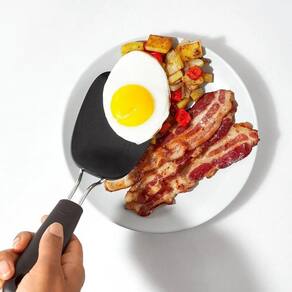 Vira alimentos delicados facilmente e não danifica o antiaderente. A ponta de náilon flexível desliza facilmente sob os alimentos em frigideiras, chapas, ou até assadeiras de biscoitos e é altamente resistente ao calor.