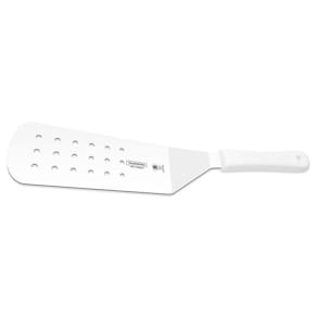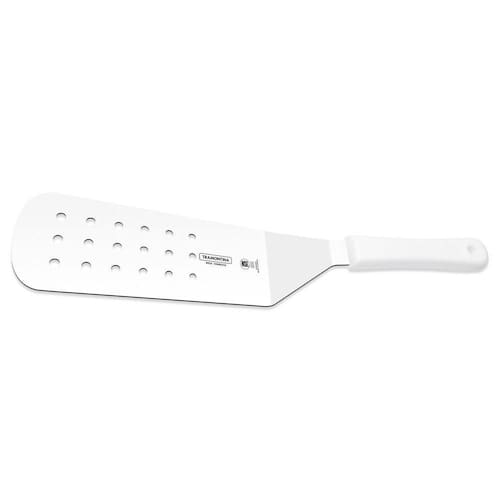 Espátula Para Frituras 9"x3" Perfurada Tramontina Lâmina Em Aço Inox E Cabo Branco Tramontina Espátula para frituras 9x3 Perfurada Tramontina Lâmina em Aço Inox e Cabo Branco Tramontina - Qualidade e durabilidade para profissionais que trabalham muito. Com tecnologia de ponta, as facas profissionais estão sempre preparadas para entrar em ação e fazer bonito com qualquer ingrediente. Eficiência é o que não falta. A altíssima qualidade das lâminas, resultado do tratamento térmico composto por têmpera (aquecimento da lâmina), subzero (resfriamento de 50 a 196 graus negativos) e revenimento (aumento da elasticidade do aço) garante vida longa e eficiente. A anatomia e ergonomia do cabo de polipropileno texturizado, injetado diretamente sobre a espiga da lâmina, oferecem segurança e conforto durante o manuseio. A proteção antimicrobiana inibe e reduz o crescimento de bactérias e fungos. Essa tecnologia é incorporada durante o processo de fabrição do cabo e dura por toda vida útil do produto, mas não não elimina a necessidade de lavá-los.OrientaçõesLâmina de aço inox DIN 1.4110. Cabo de polipropileno.ObservaçõesUSO SEGURO E ADEQUADO: Produtos cortantes e perfurantes, tenha cuidado ao manusear e mantenha fora do alcance das crianças. Para maior durabilidade dos produtos recomenda-se secar bem depois de lavar, mesmo após lavagem em máquina de lavar. Para descarte dos produtos e embalagens sigas as orientações de reciclagem vigentes.Características GeraisEAN137891112054226DUN1417891112054223NCM8215.99.10Peso Líquido0,1700 kg.Peso Bruto0,1830 kg.Metragem0,004339 m.Dimensões Embalagem (Compr. X Larg. X Alt.)105x 95x 435 mm.Dimensões Produto (Compr. X Larg. X Alt.)435x 95x 105 mm.Espessura1,2 mm.Cor 1FFFFFF Hexa Características Gerais do Produto: Garantia: - 1 Ano