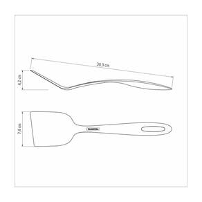 Espátula de Nylon que permite uso em temperaturas de até 180 C. O cabo possui furo passante possibilitando que sejam pendurado na sua cozinha. Utensílio ideal para uso em panelas com revestimentos antiaderentes e cerâmicos, pois não danifica o produto. Pode ir à máquina de lavar louças facilitando seu dia a dia.
