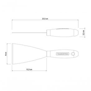 Modo de uso: Utilizada na construção civil para raspagem de tinta, cimento e outros resíduos. Para descarte dos produtos e embalagens siga as orientações de reciclagem vigentes.